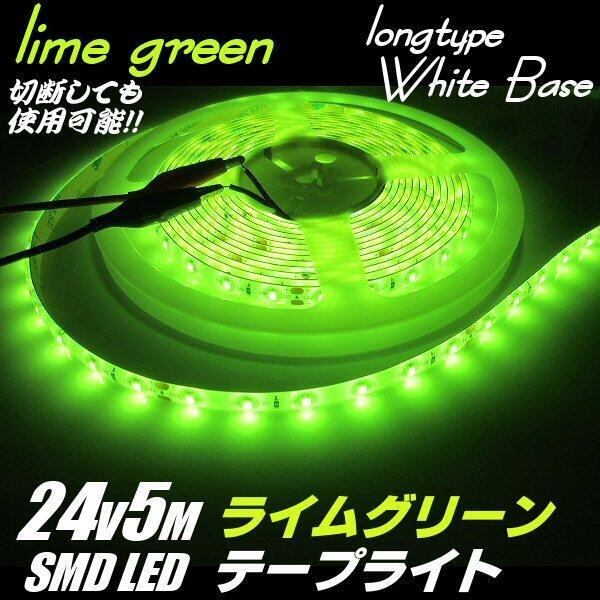 24V 5M ライムグリーン LED テープライト トラック サイド 黄 緑 マーカー 船舶 照明 デコトラ アンドン 切断可能 アンダー 防水