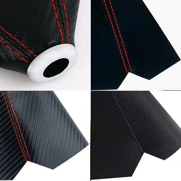 汎用 シフト ノブ ブーツ カバー 高級 PVC レザー調 カーボン柄 黒 赤ステッチ MT AT ミッション オートマ