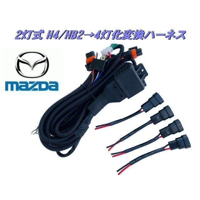 ハイビーム 全灯化 リレー H4 ヘッドライト 2灯式 → 4灯式 変換 ハーネス HID LED ハロゲン 4灯化 マツダ