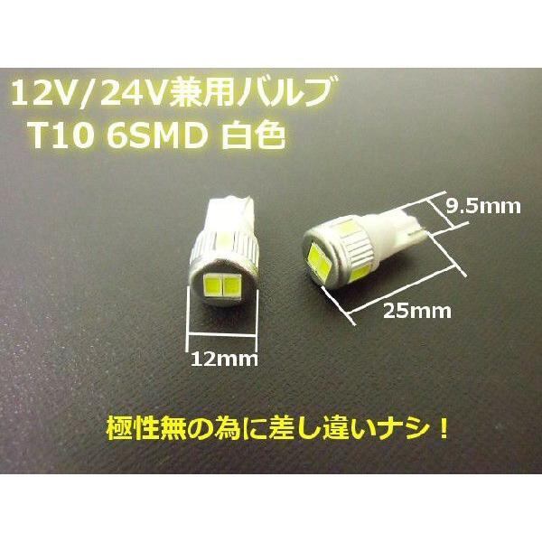12V・24V兼用/T10ウェッジ/白色ホワイト/6連発SMDLED/2個セット