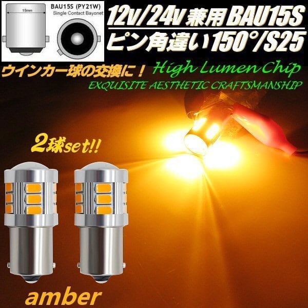 12v 24v BAU15s ピン角違い150度 S25 LED 10-60v ウィンカー バルブ 2個 ウインカー アンバー オレンジ色 マーカー トラック